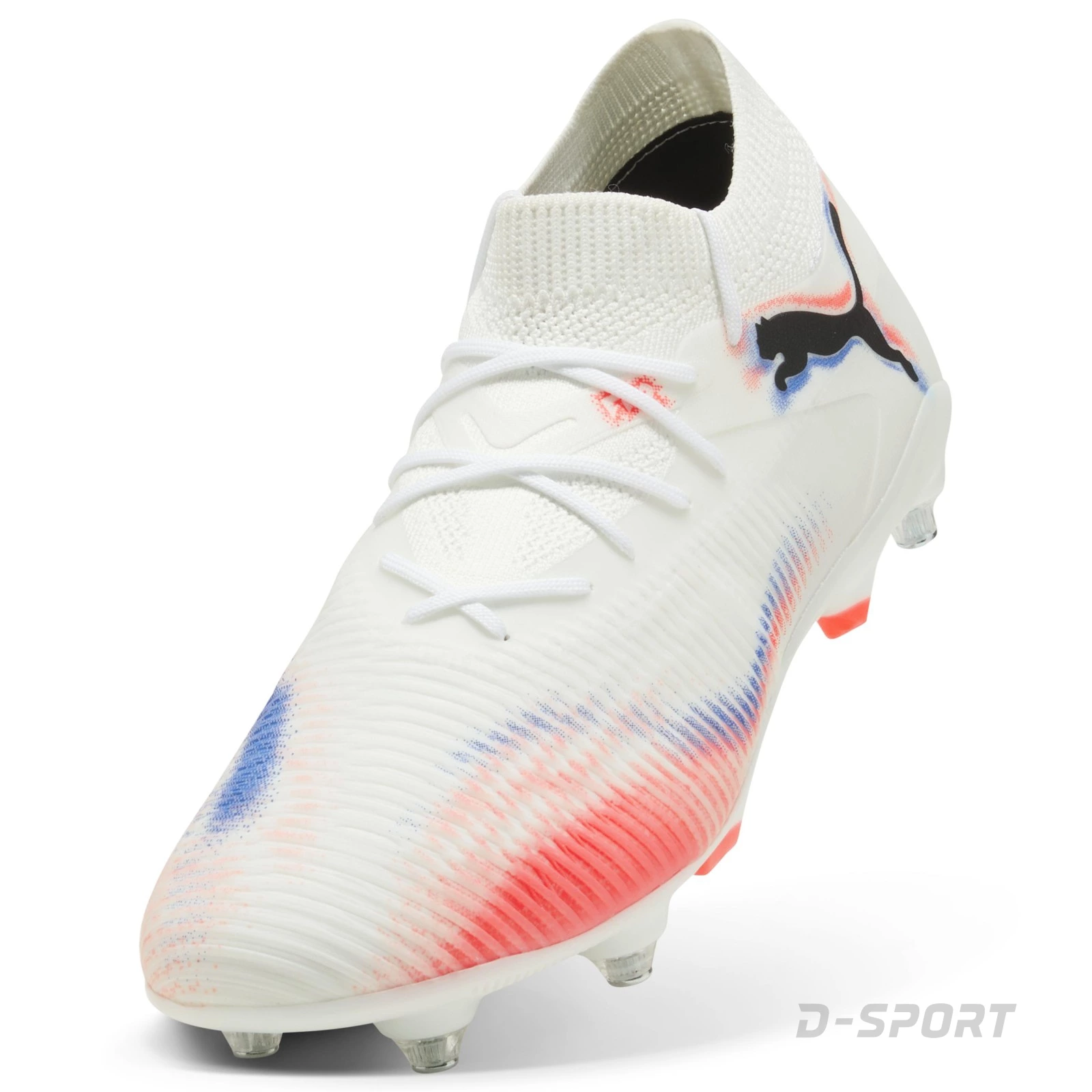 Cu Puma Future 8 Match MxSG, vei controla jocul chiar și pe cele mai moi și noroioase terenuri. Tupeul ușor realizat din plasă respirabilă și completat de o manșetă tricotată elastică îmbrățișează piciorul și asigură stabilitate. Tehnologia GripControl te ajută să ții mingea sub control chiar și în timpul schimbărilor rapide de direcție, iar talpa TPU cu crampoane metalice înșurubate asigură o aderență sigură pe suprafețele moi.